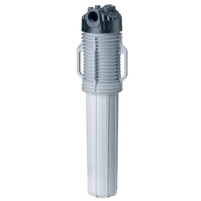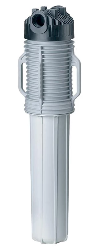 Big One is a unique polypropylene housing for professional applications where high performances and reliable products are needed. Designed to treat high quantity of water, it’s a two-pieces compact container, that can fit 23” and 40” filtering elements. The housing is made with 3” female In-Out threading without brass inserts, and it’s equipped with, plastic drain plug and plastic relief valve. Big One is provided with a stainless steel clamp that enable to open and close (easily and quickly) the housing during maintenance operations. The housing is individually packed in carton box.