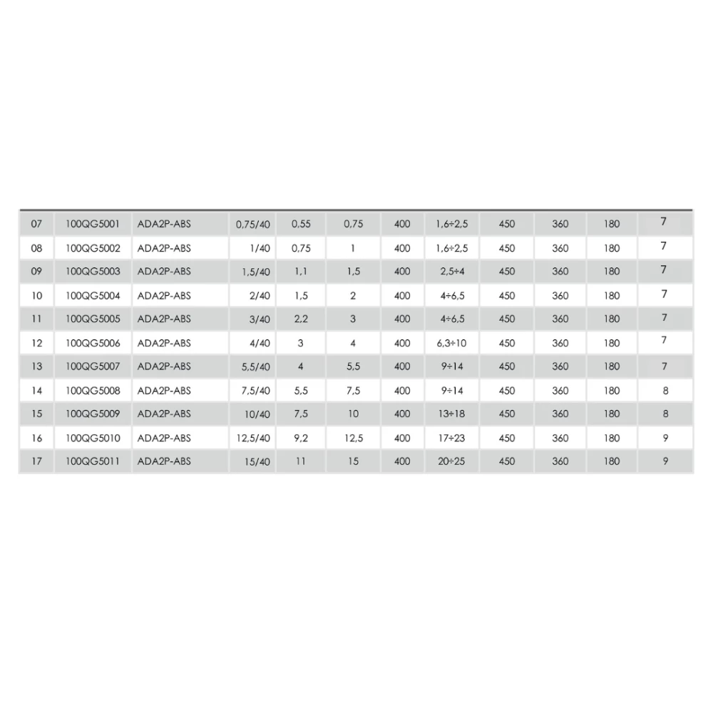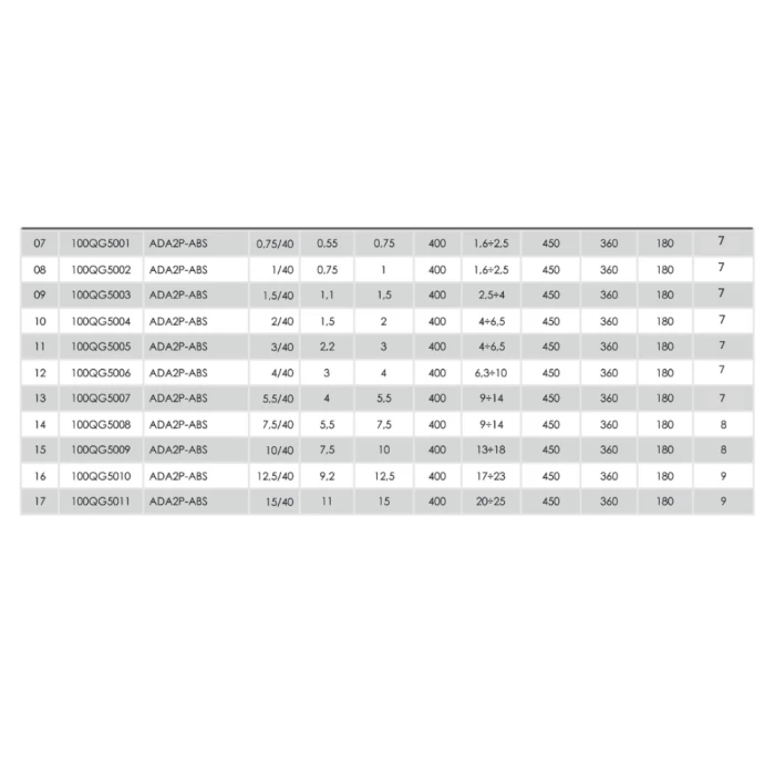 - Мощности (НР): 0,75 / 1 / 1,5 / 2 / 3 / 4 / 5,5 / 7,5 / 10 / 12,5 / 15