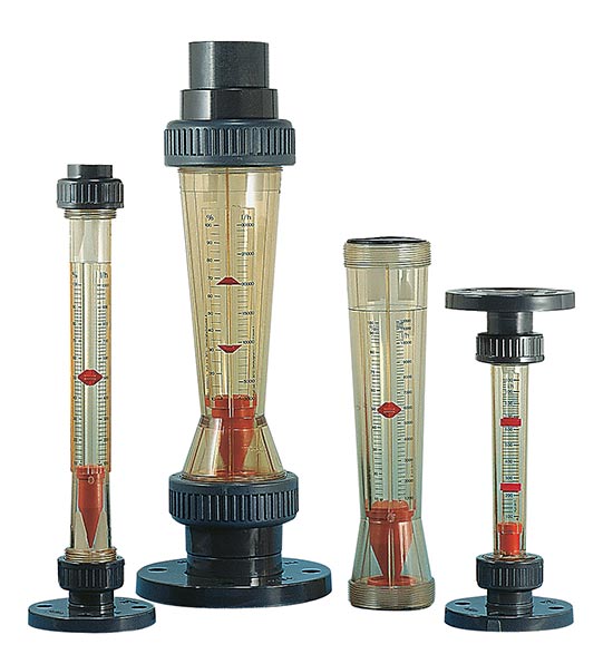 Течността протича през дебитомера отдолу нагоре. Тя повдига поплавъка и нейният дебит може да бъде отчетен по скалата.