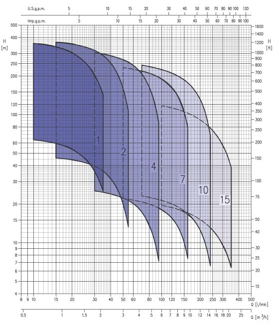 350 m за потопяеми помпи с двигател, запълнен с вода (WY)