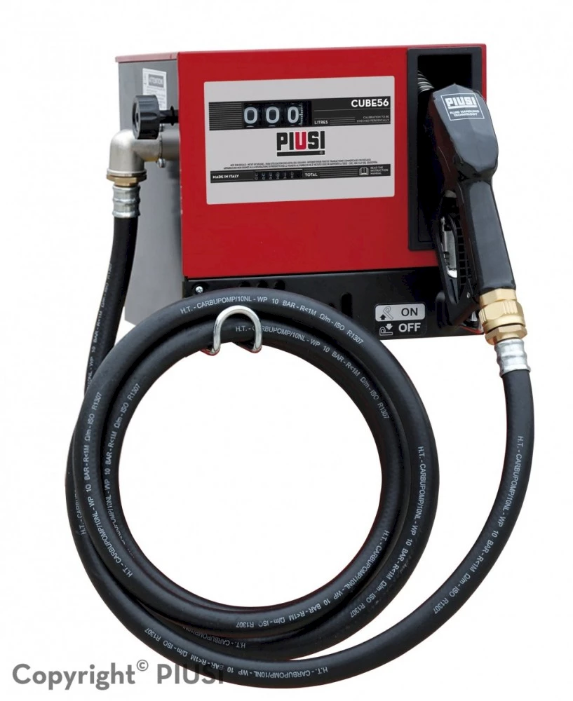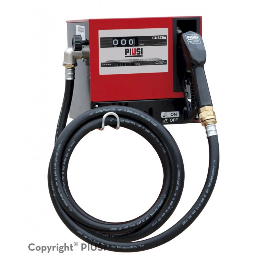 Колонкa за дизелово гориво PIUSI Cube 56. Колонките за нафта от серия Cube 56 са разработени за вътрешно-фирмен контрол. С тях може бързо и сигурно да се зареждат превозни средства, като се измерват и записват разходените количества гориво. Разходомерите, монтирани на колонките, са здрави, сигурни и лесни за използване. Друго предимство на колонките Cube 56 е тяхната функционалност. Те могат да се монтират на различни места, включително на варели, благодарение на бързата им връзка 2".