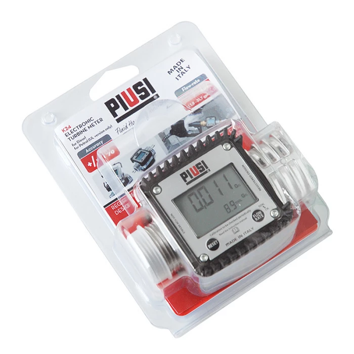 Турбинен дигитален разходомер за отчитане на ниско вискозитетни флуиди с турбинна мерителна система. Лесен за монтиране in line или в края на нагнетателната тръба, снабден с лесен за четене компактен дисплей.