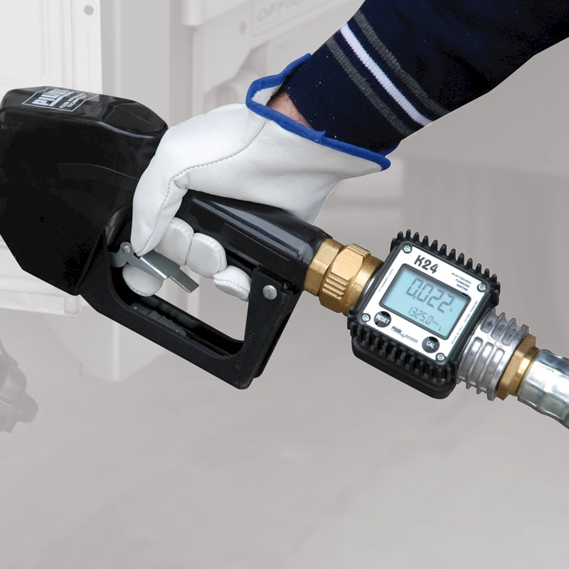 За улеснение разходомерът може да се монтира директно на пистолета. Благодарение на здравата си кутия и уплътнената електронна карта, този разходомер практически може да се използва при всякакви условия. Дисплея може да се завърта за да се чете от всякакъв ъгъл. Микропроцесорът се захранва от две лесно сменяеми дълготрайни батерии.