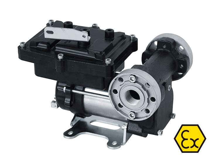 Пластинчата помпа, предназначена за работа във взривоопасна среда. Подходяща е за транспортиране на бензин, керосин и дизелово гориво. Помпата е в съответствие със следната маркировка ATEX/IECEx: II 2 G Ex d IIA T4 Gb.