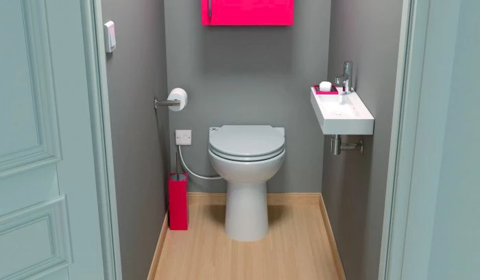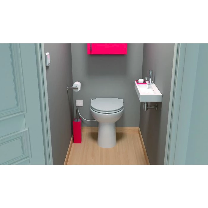 Sanicompact 43 е компактна керамична тоалетна чиния с вградена помпа с режещ механизъм. Тя не се нуждае от тоалетно казанче, тъй като системата за изпускане на водата е вградена. Предназначена е за инсталиране на тоалетни и мивки дори и в тесни и ограничени пространства във всеки дом.
