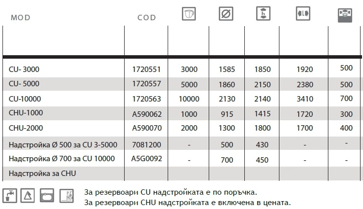 Резервоарите за вода осигуряват постоянно, рентабилно решение за подсигуряване на необходимостта от подземно складиране на вода. Конструкцията от здрав полиетилен им позволява да устоят на просмукването в тях на химикали и газове, които се намират в почвата. Резервоарите са разработени под строги качествени изисквания, за да осигурят използване щадящо природата.