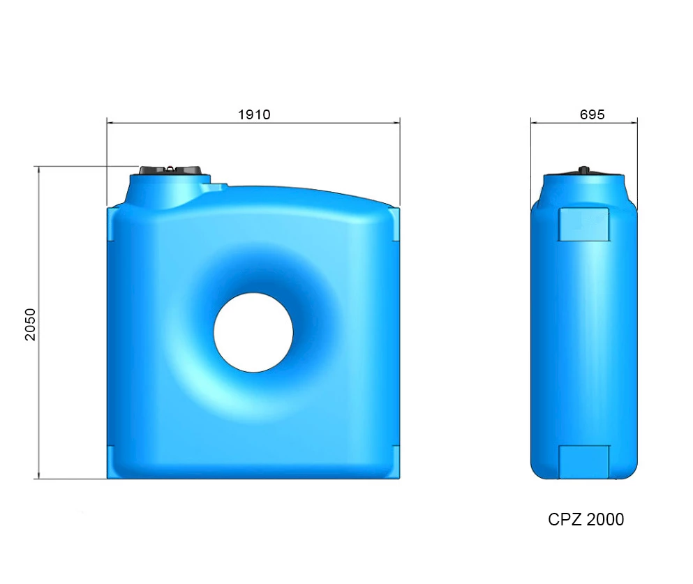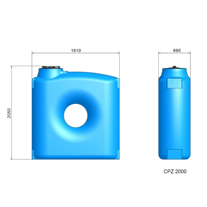 Резервоари за вода от полиетилен. Поради малката си ширина (65 см.) са подходящи за места с ограничено пространство. Предлагат се модели от 500 до 2000 литра. Оборудвани са с месингов накрайник с външна резба 1".