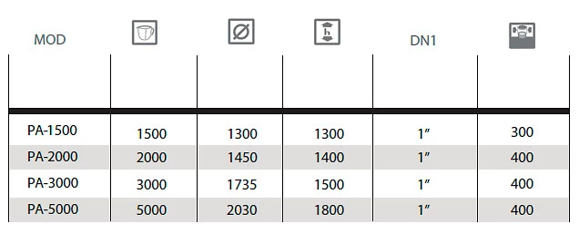 Вертикални резервоари за питейна вода. Изработени са от полиетилен. Предлагат се модели от 2000 до 5000 литра. Оборудвани са с месингов накрайник с резба 1".